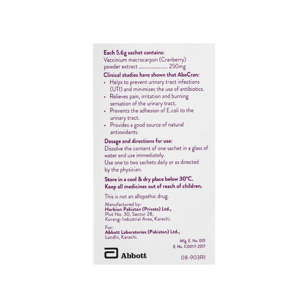 AboCran Cranberry sachets contain a standardized cranberry extract that helps prevent urinary tract infections, supports good health, and boosts antioxidants.