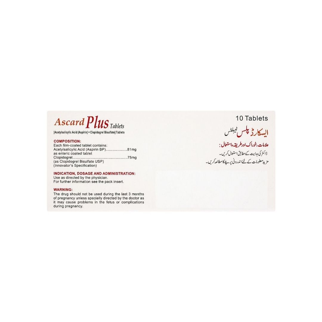 ATCO Ascard Plus Tablets 10 Pack (Aspirin 81mg + Clopidogrel 75mg)