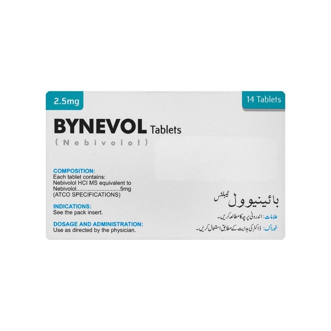 ATCO Bynevol Tablets 2.5mg are used to treat hypertension and certain heart conditions. Formulated with Nebivolol, they help lower blood pressure, improve blood circulation, and reduce heart strain when taken as prescribed by a physician.