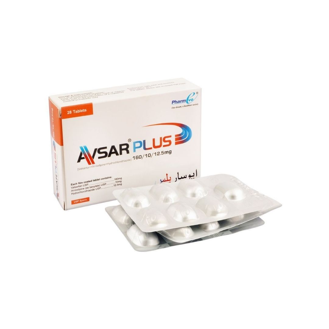 Avsar Plus 160/10/12.5mg 28 tablets provide triple therapy with Valsartan, Amlodipine, and Hydrochlorothiazide to effectively manage hypertension and reduce cardiovascular risks.