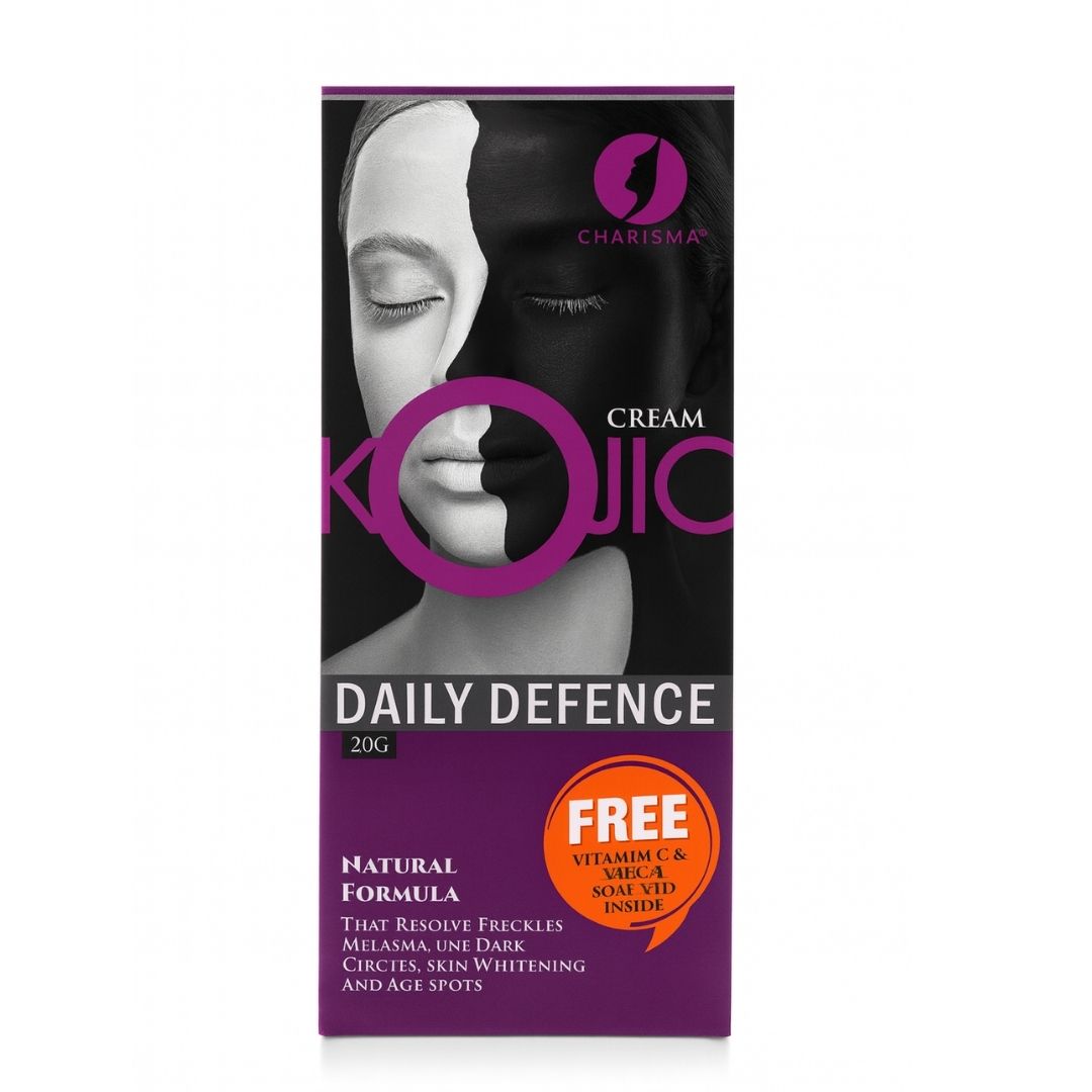 Charisma Kojic Daily Defence Cream 20g with Vitamin C Gel reduces freckles, dark circles, melasma, and age spots while brightening skin naturally.