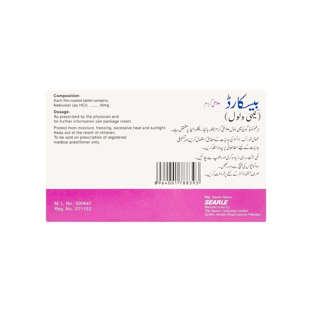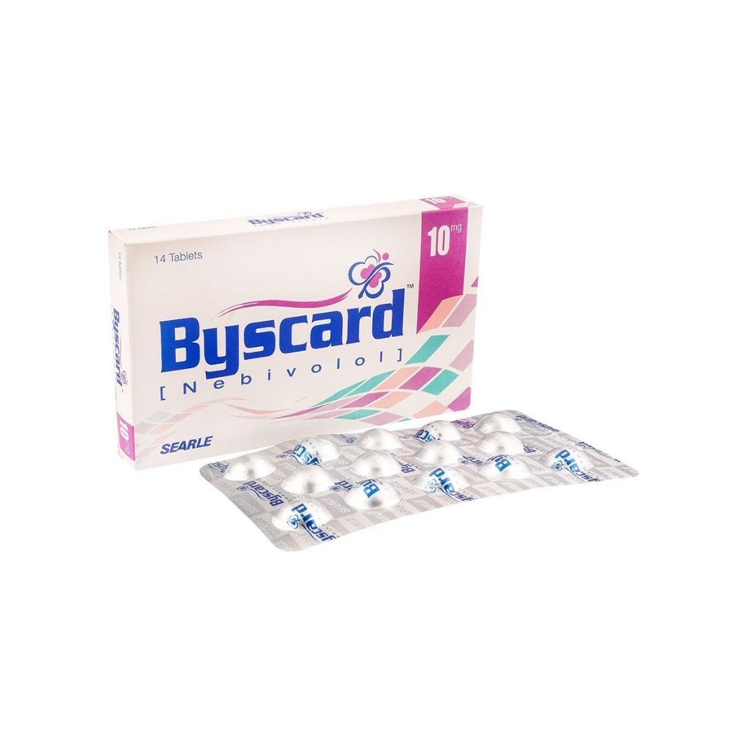 Searle Byscard 10mg Tablet contains Nebivolol, a beta-blocker used to treat hypertension and heart failure. It helps lower blood pressure, improves circulation, and reduces the risk of heart complications. Ideal for daily use under medical supervision.